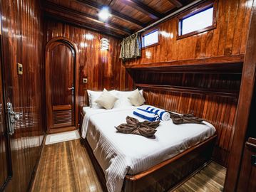 The carefully chosen teak furnishings exude a timeless beauty, creating a sense of serenity and sophistication. The cabin's design is meticulously crafted, seamlessly blending modern comforts with the rustic allure of wooden textures.